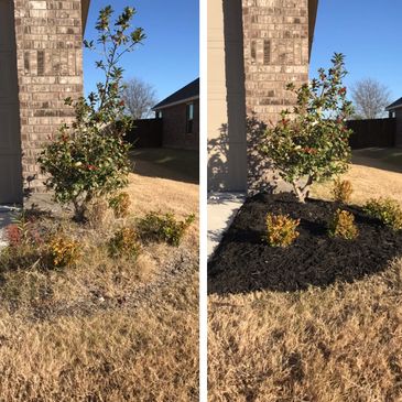 Removal of all unwanted growth/grass from the beds. We then remove the old non-decomposed mulch & replace with fresh mulch, color of your choice!